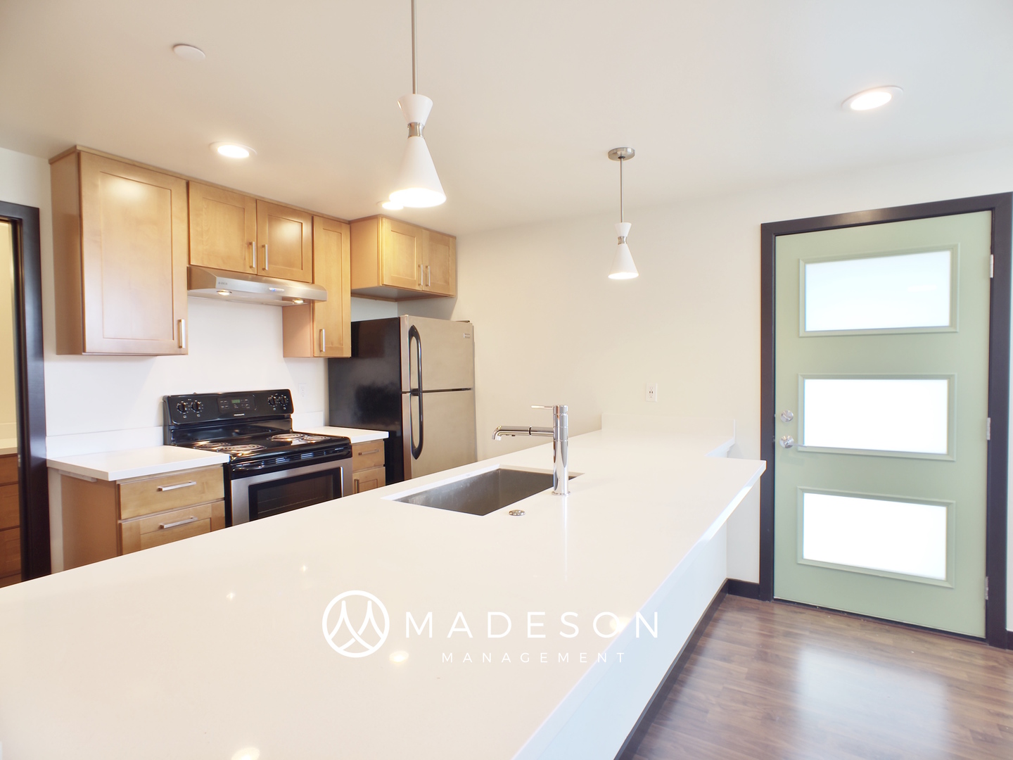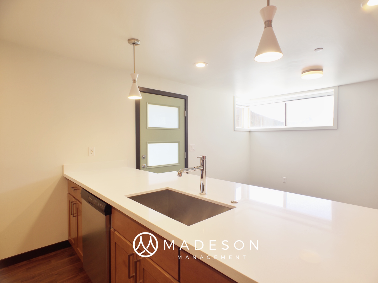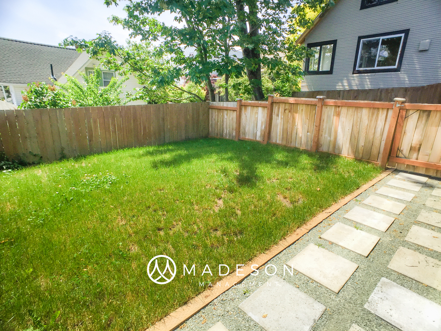 Spacious garden-view apartment available immediately, in a charming updated mid-century modern building. One bedroom, one bath with spacious great room, front-load washer dryer. Modern kitchen with sparkling quartz countertops, maple cabinets, and stainless appliances including dishwasher. A rare find - this unit includes a partially fenced grassy back yard, reserved for tenant use. Fantastic location near express bus service, just a 10 minute walk to Green Lake, 15 minute drive to South Lake Union or University of Washington.