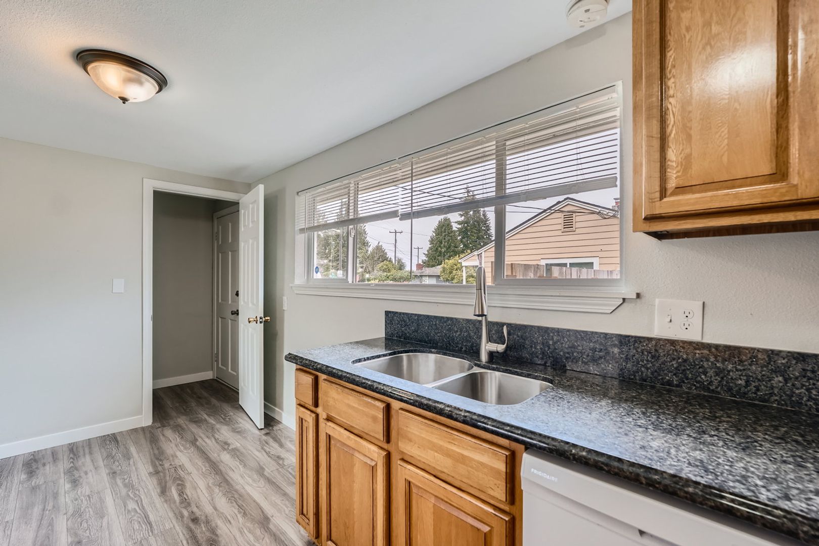Main level includes living room, two bedrooms, and one full bathroom. Mother-in-law style lower level with separate entrance features additional, family room, kitchenette and 2 bedrooms x 1 bath. New flooring and carpet, freshly painted interior. 8,800 sf lot with fully fenced spacious, private backyard with covered back patio. Large 2-car garage with storage spaces. Enjoy walking distance to Lake Washington through Lakeridge Park and playfields, and easy access to I-5 & I-405. Close to light rail station, shops, restaurants and more!